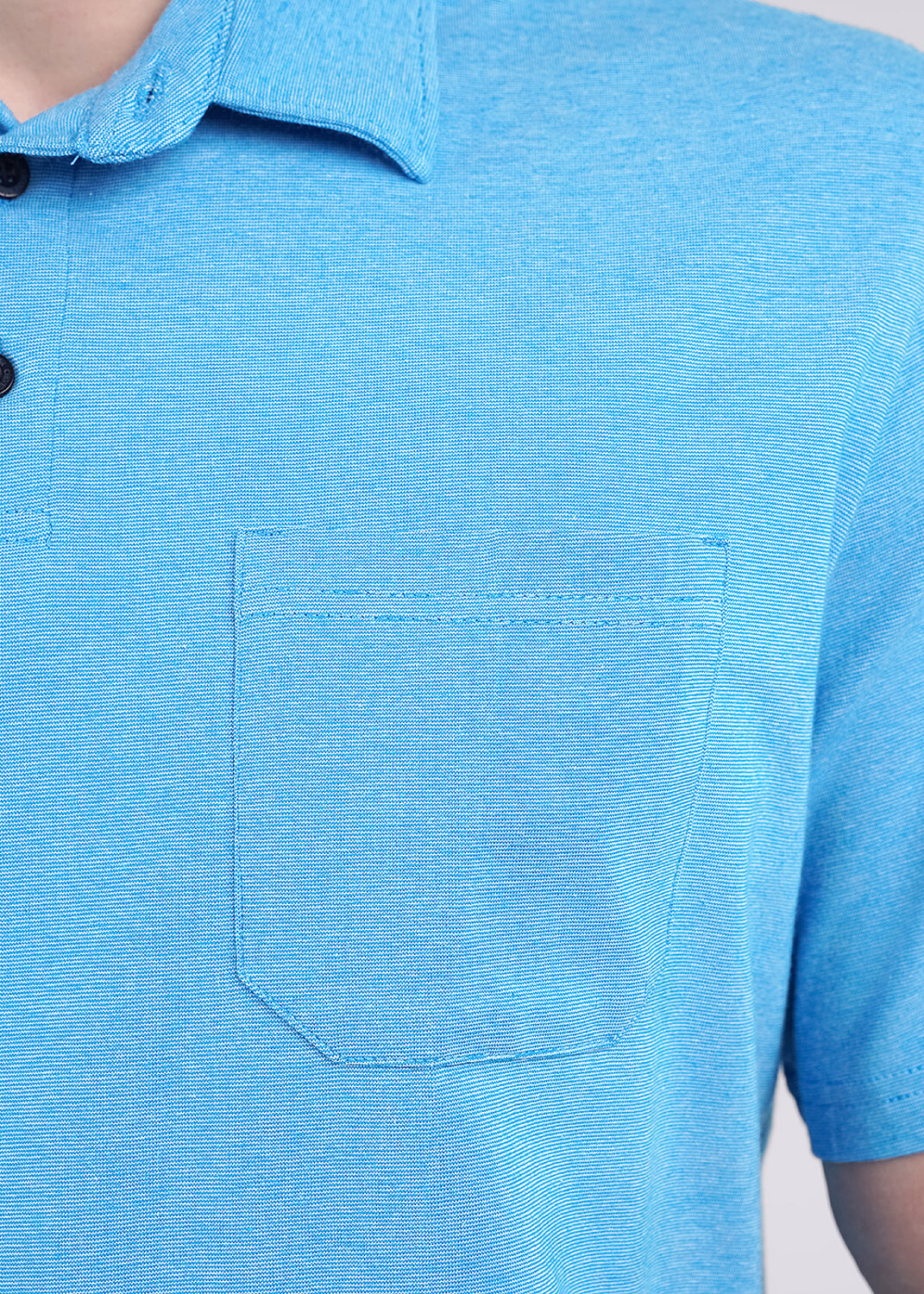 Футболка-поло мужское из хлопкового полотна с добавлением эластана, с воротником, функциональной планкой на пуговицы и карманом. Изделие выгодно подчеркивают лаконичная нашивка по низу изделия. Хорошее дополнение к брюкам или джинсам.
