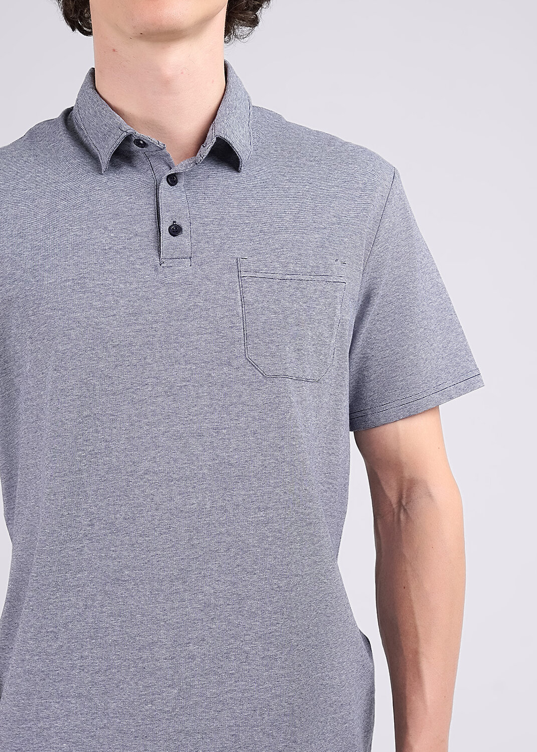 Футболка-поло мужское из хлопкового полотна с добавлением эластана, с воротником, функциональной планкой на пуговицы и карманом. Изделие выгодно подчеркивают лаконичная нашивка по низу изделия. Хорошее дополнение к брюкам или джинсам.