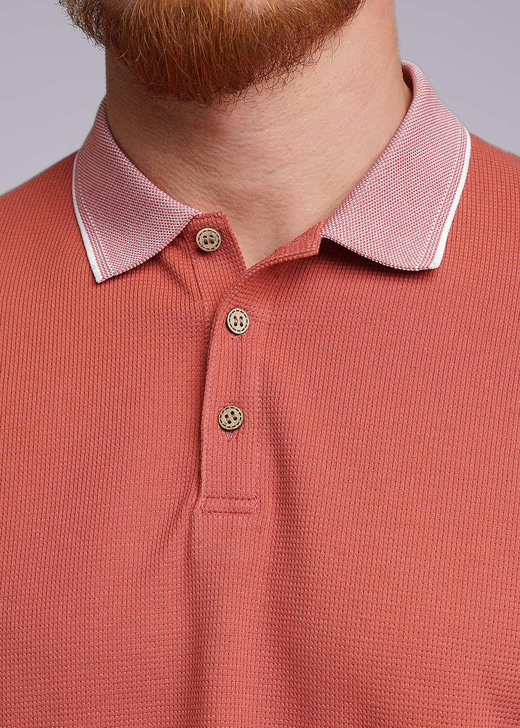 Футболка-поло мужское из хлопкового полотна с добавлением эластана. Благодаря вязаным отделкам по воротнику и манжетам, а так же фирменной фурнитурой модель выглядит оригинально. Изделие подойдет к любым брюкам или джинсам.