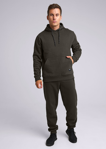 Мужские брюки из футера на эластичном поясе с пестрым шнуром и манжетах. Для функциональности предусмотрены боковые карманы на молнии. Спереди косые резы в области колена, а так же силиконовая нашивка и шрифтовой принт. Подойдут для активного отдыха.