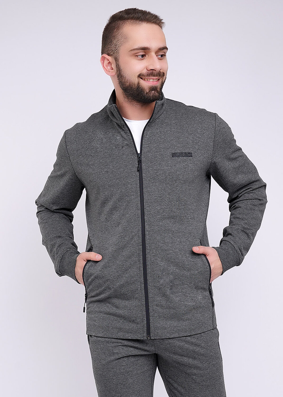 Толстовка с застежкой-молнией по переду и воротником-стойкой из плотного трикотажа футера. Рукава втачные с манжетой, по низу пояс. Для большего удобства спереди предусмотрены 2 кармана на молнии. Модель для активного образа жизни.