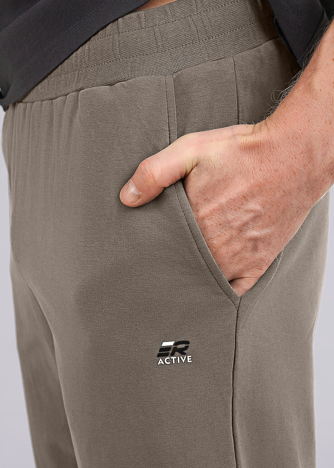 Брюки из футера среднего объема с манжетами, с широким поясом и шнуром внутри. Для функциональности предусмотрены боковые карманы. На брюках присутствует фирменная фурнитура. Прекрасное дополнени к толстовке из такого же полотна на каждый день.