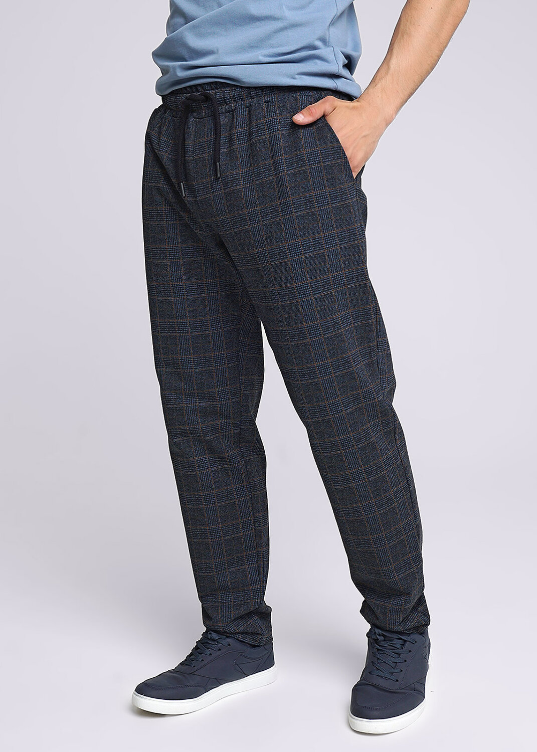 Мужские брюки из хлопкового трикотажного полотна "футер" на эластичном поясе со шнуром. Для функциональности предусмотрены боковые карманы. Модель выглядит лаконично и стильно. Отличное дополнение к образу в стиле casual.