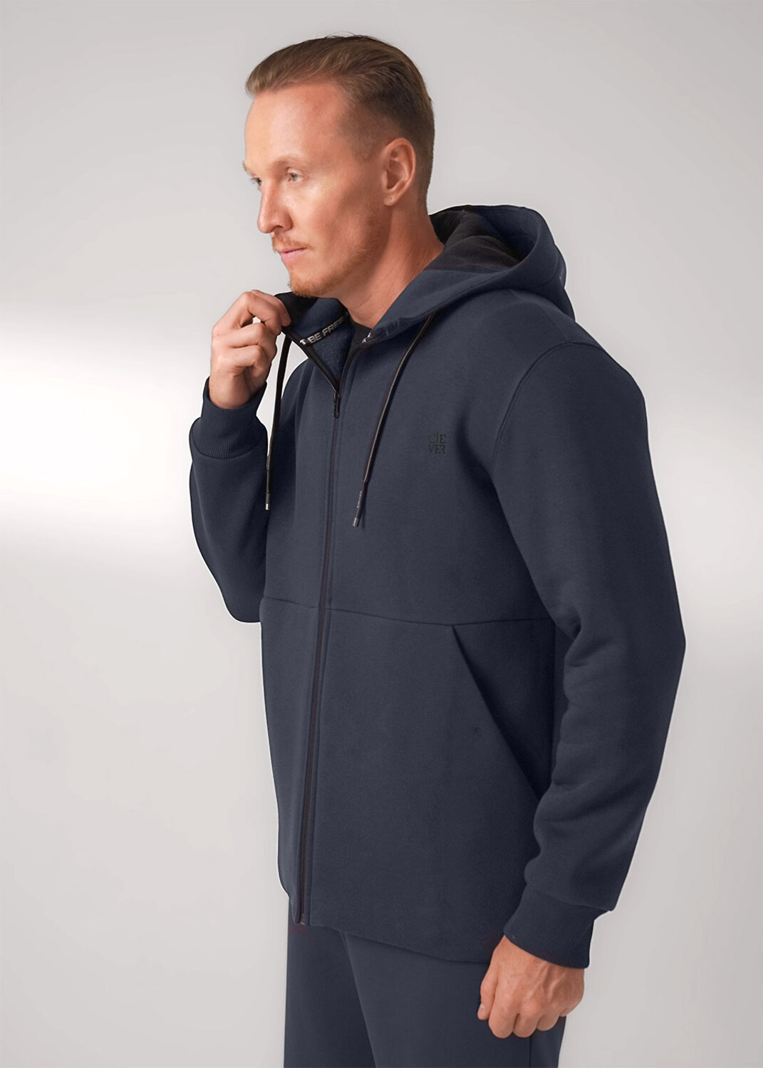 Тёплая мужская трикотажная куртка на молнии с капюшоном и вместительными карманами. Произведена из мягкого трикотажного футер с начёсом, дополнена дизайнерским принтом. Удобный и практичный вариант на каждый день.