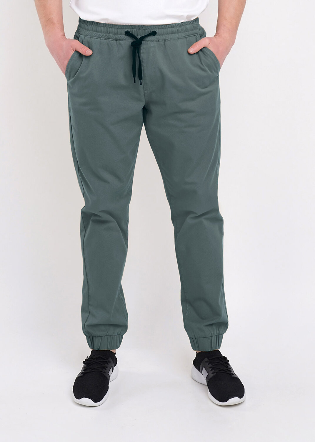 Мужские хлопковые джоггеры средней посадки на резинке по низу. Удобство обеспечивается за счет карманов, а регулировка талии благодаря шнуру с наконечниками. Такие брюки можно сочетать в спортивном или повседневном образе с любыми футболками.