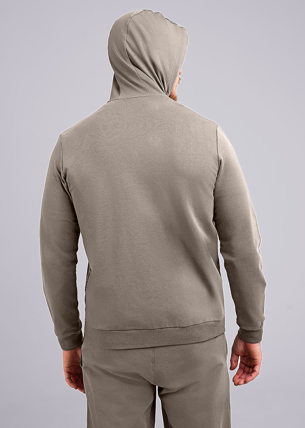 Куртка мужская из плотного футера с добавлением эластана. Изделие на капюшоне с вместительными карманами, дополнена фирменной фурнитурой, втачной рукав с манжетом по низу. Удобный и практичный вариант на каждый день.