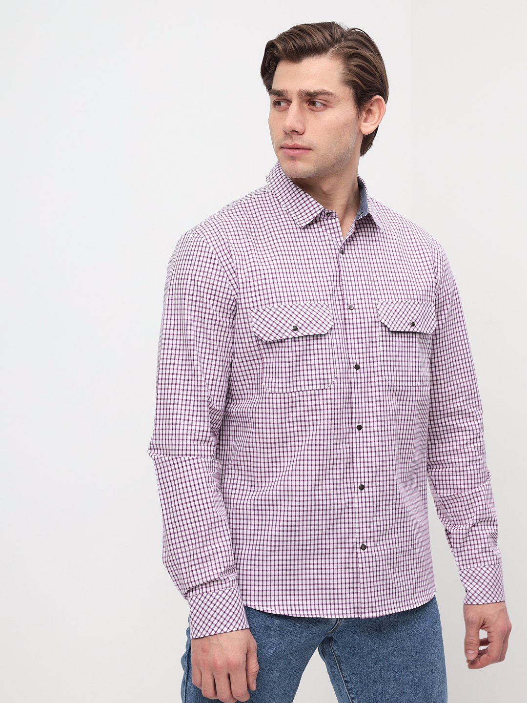 Цвет: Сиреневый Рисунок: Клетка..показатьli> Состав: 100% хлопок Модель: Прилегающая Ворот: Немецкий мягкий Караман: два нагрудных накладных кармана с клапаном по косой на кнопке Манжет: классический со скосом на кнопках по косой Силуэт: Прилегающий силуэт / Super Slim fit Отделка: Сорочки- внутренняя стойка воротника, внутренний манжет и нижний клапан кармана из ткани компаньонаli>