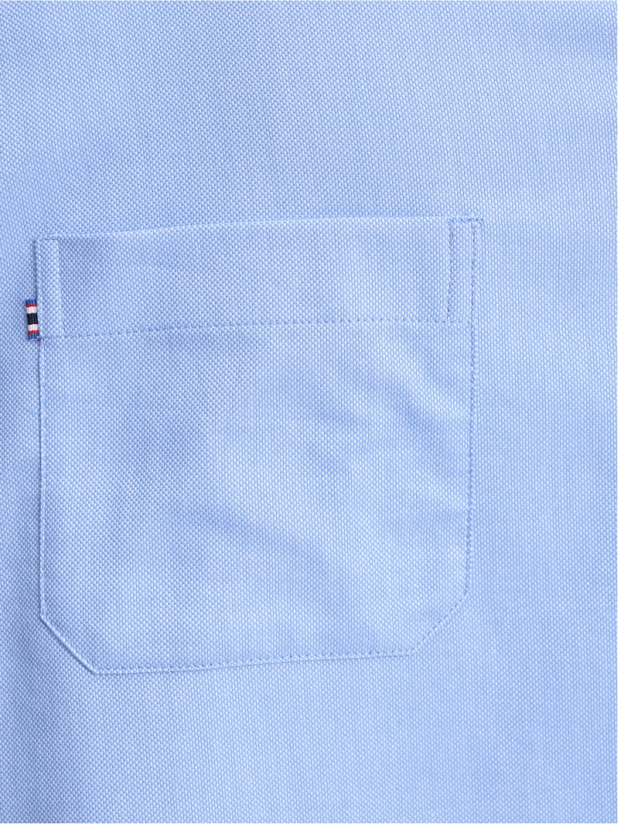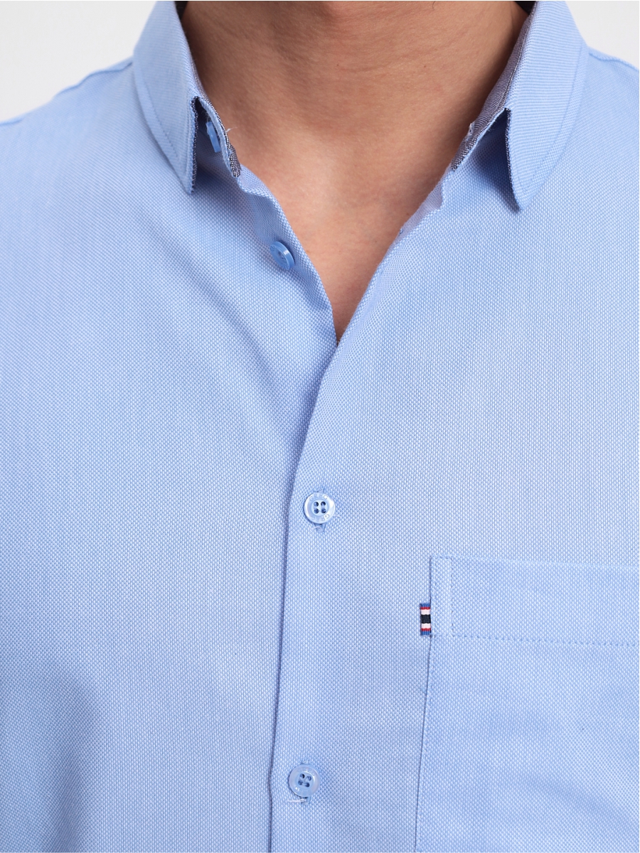 Цвет: Голубой Рисунок: Однотон с ..показатьфактурой Состав: 90% хлопок 10% полиэстер Модель: Прилегающая Ворот: Немецкий мягкий Караман: стандартный, слева, накладной со вставкой из тесьмы Манжет: классический прямой на пуговицах Силуэт: Прилегающий силуэт / Super Slim fit Отделка: Сорочки- внутреннняя стойка воротника, внутренний манжет и нижний воротник из ткани компаньонафактурой