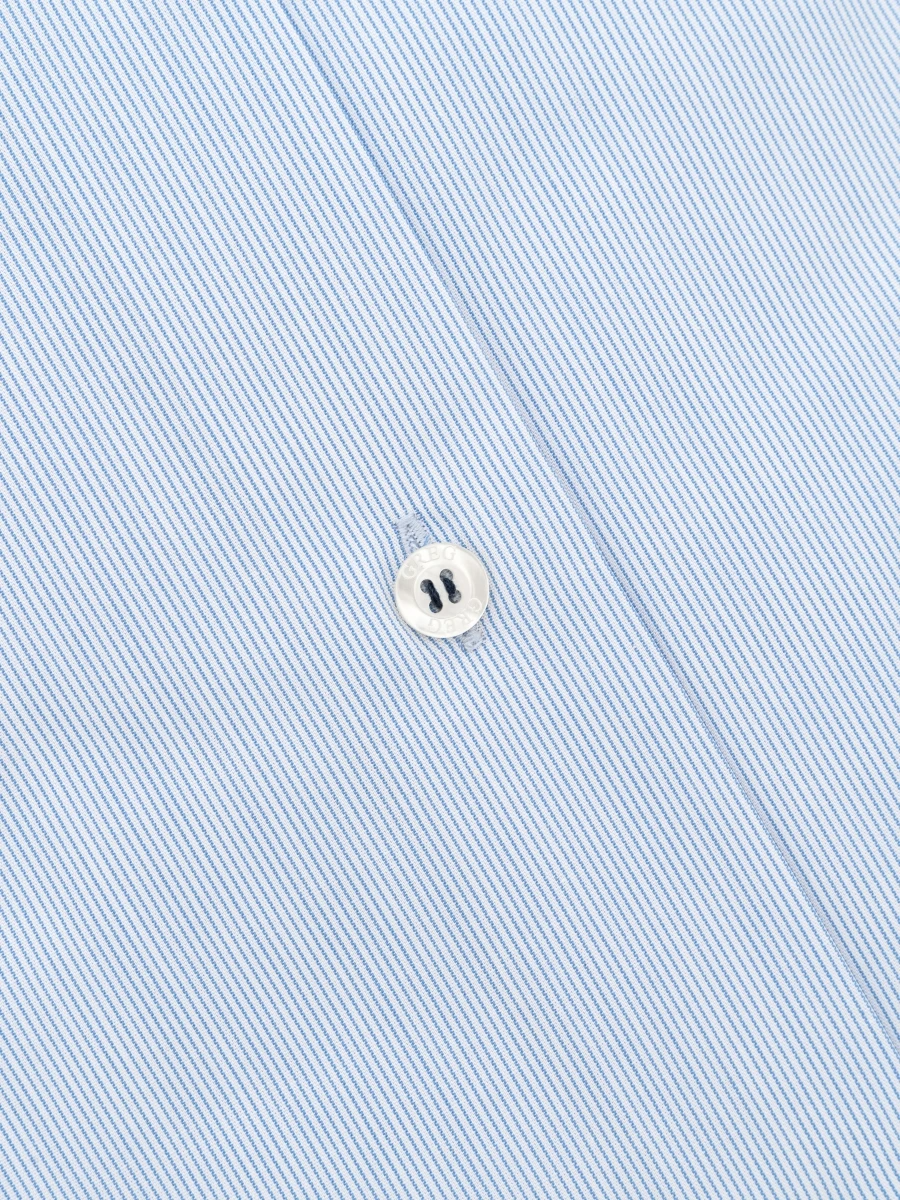 Цвет: Голубой Рисунок: Полоска..показатьi> Состав: 100% хлопок Non Iron Модель: Зауженная Ворот: Немецкий Караман: отсутствует Манжет: классический закругленный на пуговицах 6 см Силуэт: Полуприталенный силуэт / Regular fit Отделка: Сорочки- внутренняя стойка воротника из ткани компаньонаi>