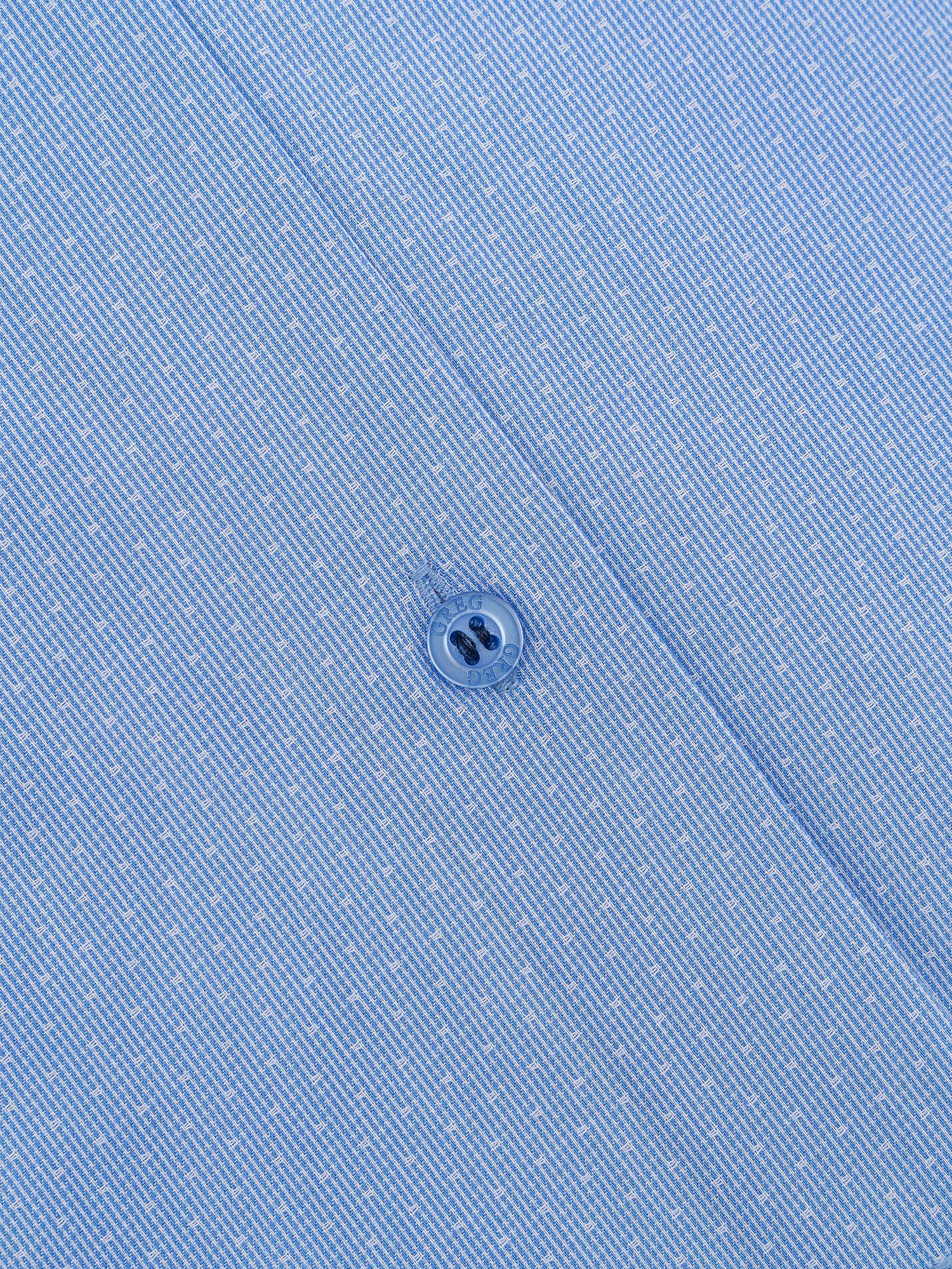 Цвет: Голубой Рисунок: В мелкие э..показатьлементы Состав: 97% хлопок 3% лайкра Модель: Зауженная Ворот: Французский маленький Караман: отсутствует Манжет: классический закругленный на пуговицах 6 см Силуэт: Полуприталенный силуэт / Regular fit Отделка: Сорочки- внутренняя стойка воротника и внутренний манжет из ткани компаньоналементы