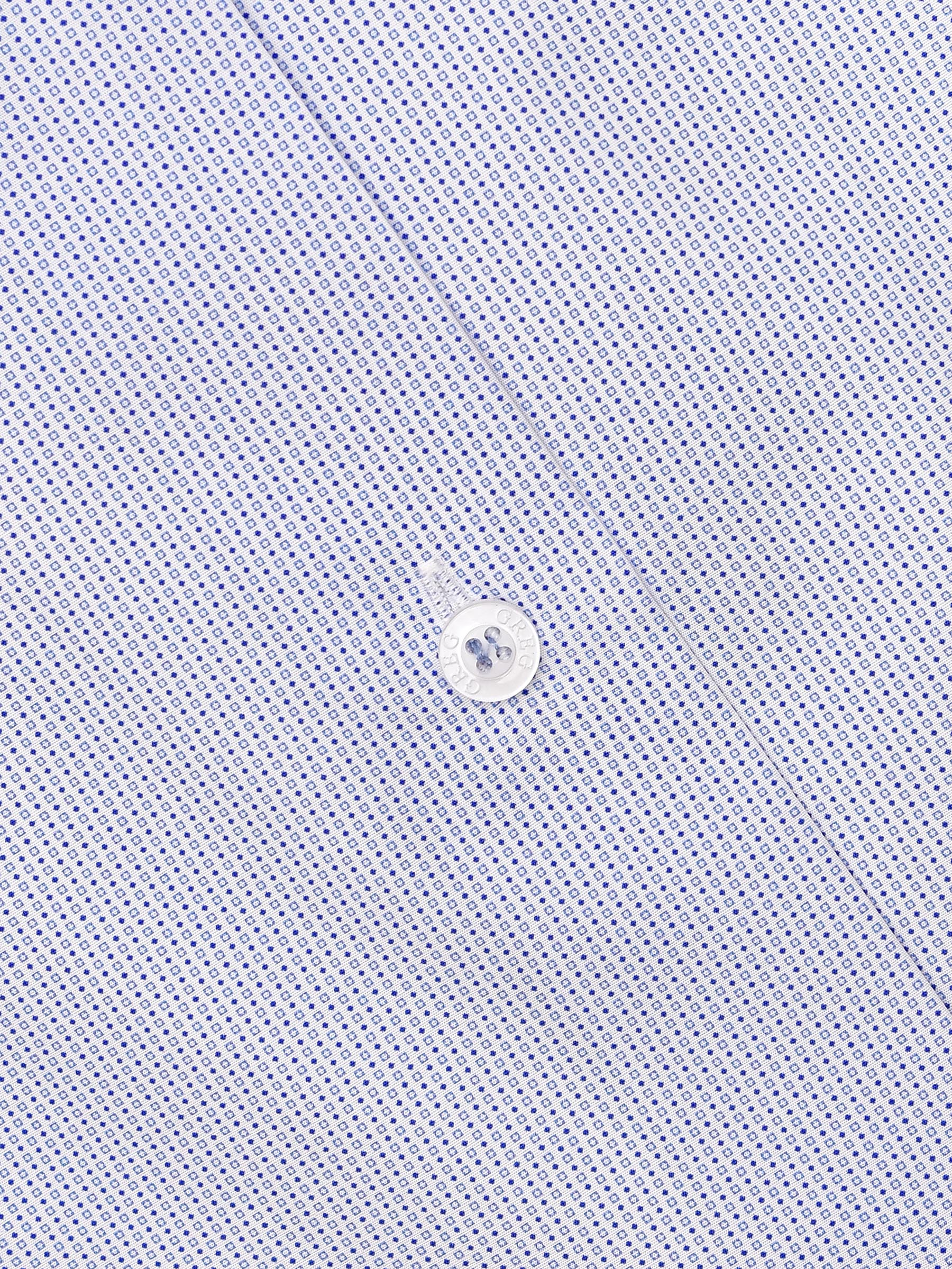 Цвет: Голубой Рисунок: В мелкие э..показатьлементы Состав: 100% хлопок Easy Care Модель: Зауженная Ворот: Немецкий Караман: отсутствует Манжет: классический закругленный на пуговицах 6 см Силуэт: Полуприталенный силуэт / Regular fit Отделка: Сорочки- внутренняя стойка воротника и внутренний манжет из ткани компаньоналементы