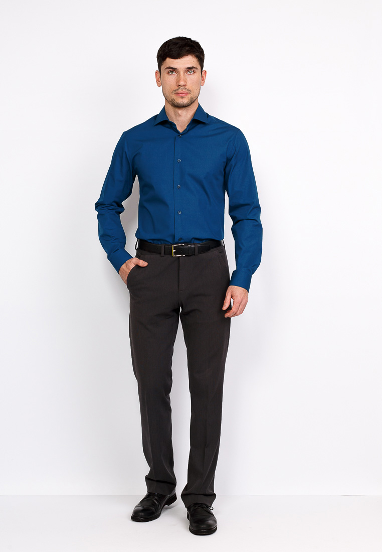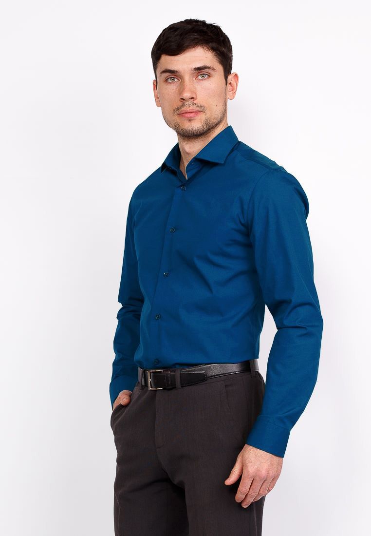 Цвет: Синий Рисунок: Без рисунка<..показать/li> Состав: 90% хлопок 10% полиэстер Модель: Зауженная с вытачками Ворот: Французский маленький Караман: отсутствует Манжет: классический закругленный на пуговицах 6 см Силуэт: Приталенный силуэт / Slim fit5eed3906-574f-11e3-8947-c80aa904729b