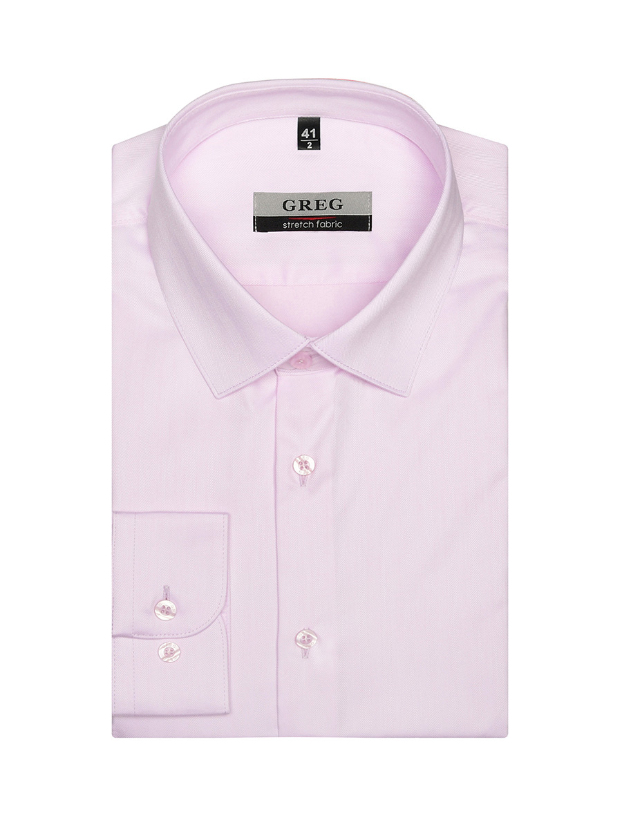 Цвет: Розовый Рисунок: Елочка..показать> Состав: 97% хлопок 3% лайкра Модель: Прилегающая Ворот: Немецкий Караман: отсутствует Манжет: классический закругленный на пуговицах 6 см Силуэт: Полуприталенный силуэт / Regular fit>