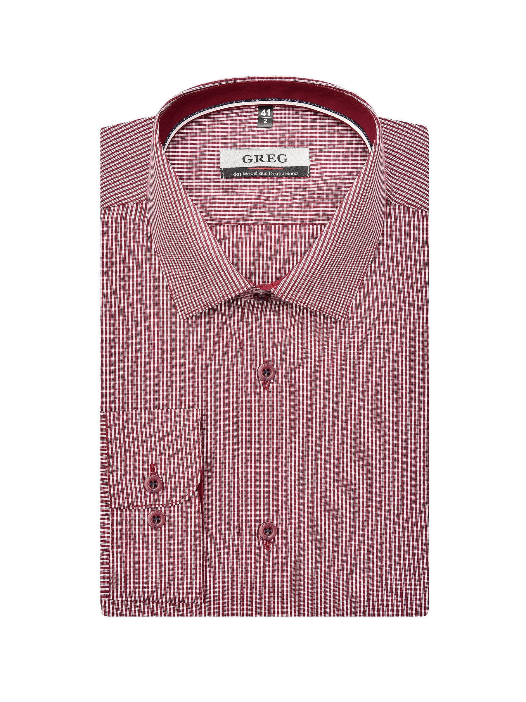 Цвет: Бордовый Рисунок: Клетка..показатьi> Состав: 90% хлопок 10% полиэстер Модель: Зауженная Ворот: Немецкий Караман: отсутствует Манжет: классический закругленный на пуговицах 6 см Силуэт: Полуприталенный силуэт / Regular fit Отделка: Сорочки- внутренняя стойка воротника и внутренний манжет из ткани компаньонаi>