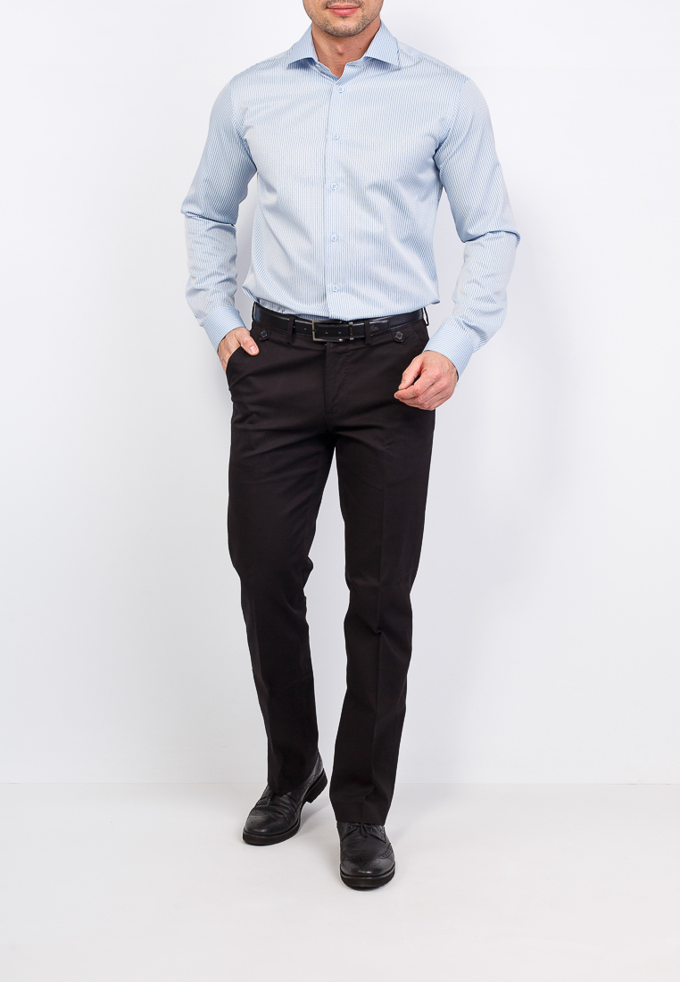 Цвет: Голубой Рисунок: Полоска..показатьi> Состав: 90% хлопок 10% полиэстер Модель: Зауженная Ворот: Французский маленький Караман: отсутствует Манжет: классический закругленный на пуговицах 6 см Силуэт: Полуприталенный силуэт / Regular fiti>