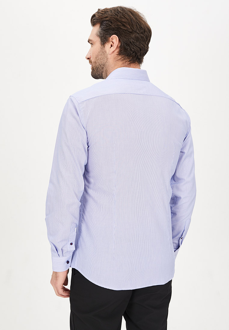 Цвет: Голубой Рисунок: Полоска..показатьi> Состав: 100% хлопок Easy Care Модель: Зауженная с вытачками Ворот: Немецкий Караман: отсутствует Манжет: классический закругленный на пуговицах 6 см Силуэт: Приталенный силуэт / Slim fit Отделка: Сорочки- внутренняя стойка воротника и внутренний манжет из ткани компаньонаi>