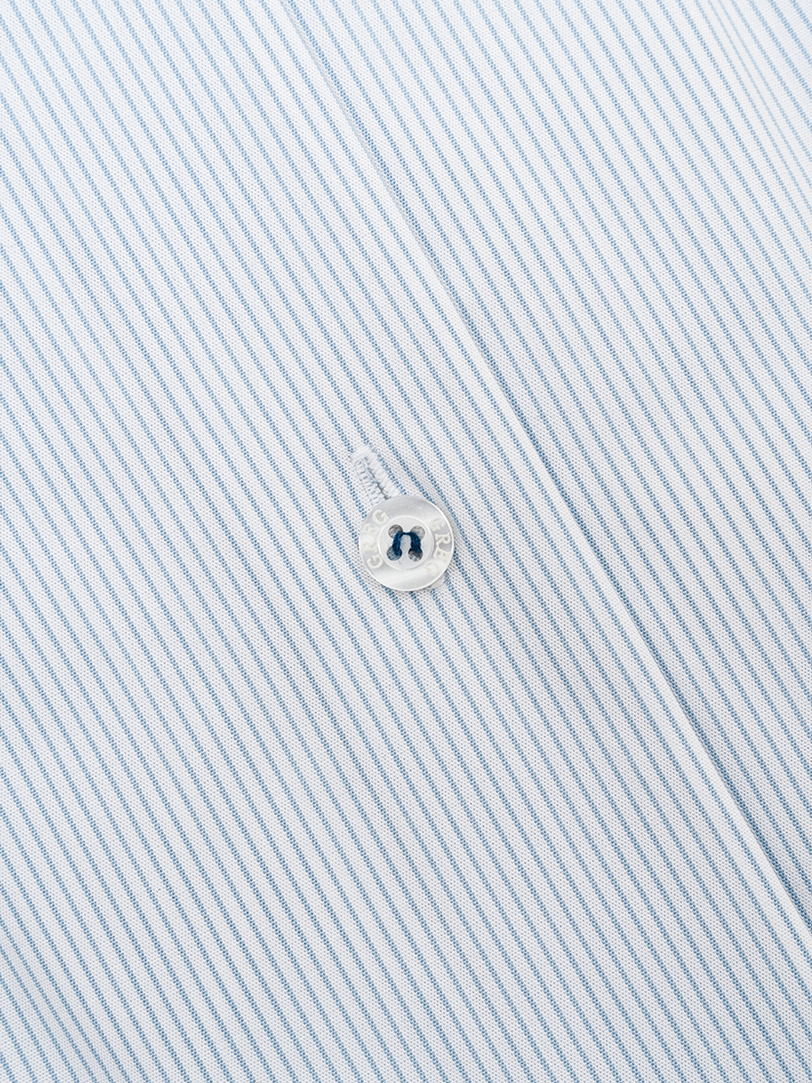 Цвет: Голубой Рисунок: Полоска..показатьi> Состав: 97% хлопок 3% лайкра Модель: Зауженная Ворот: Немецкий Караман: отсутствует Манжет: классический закругленный на пуговицах 6 см Силуэт: Полуприталенный силуэт / Regular fit Отделка: Сорочки- тесьма по нижнему краю внутренней стойки воротникаi>