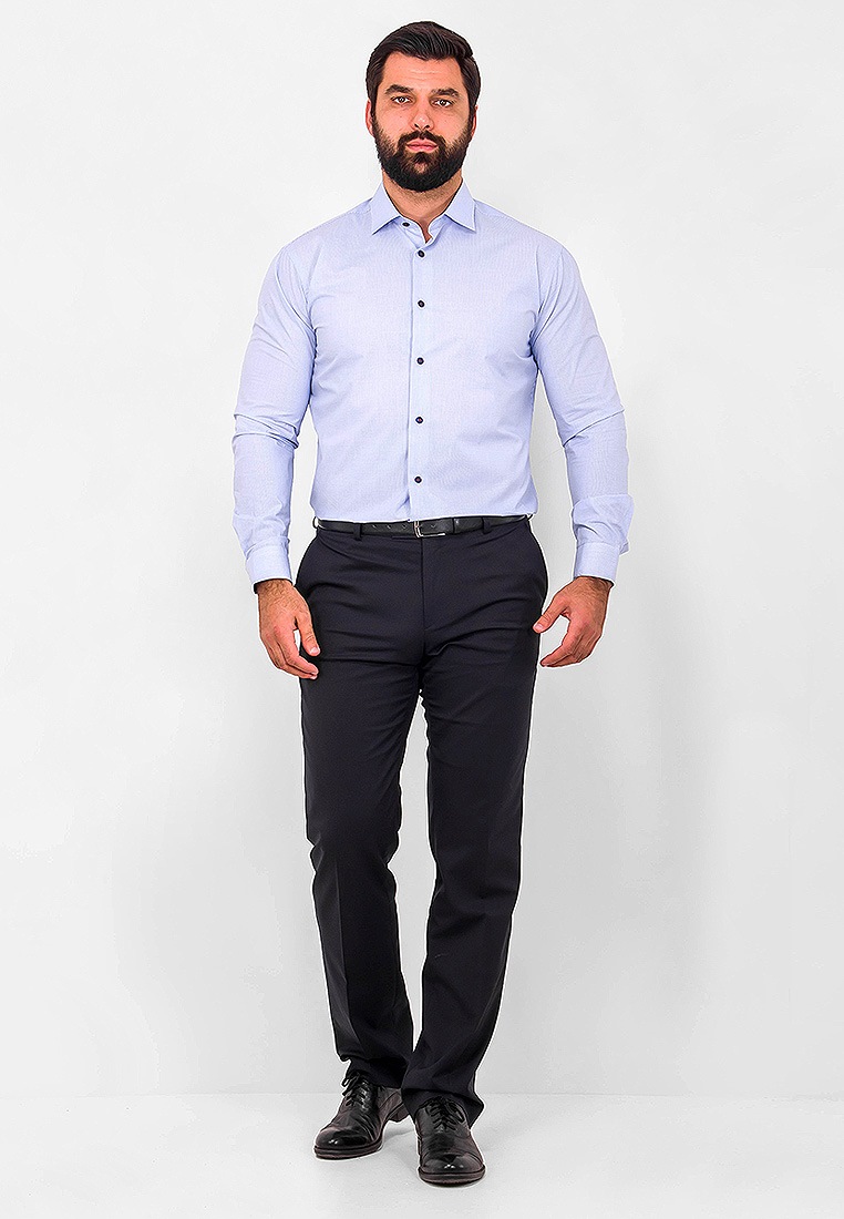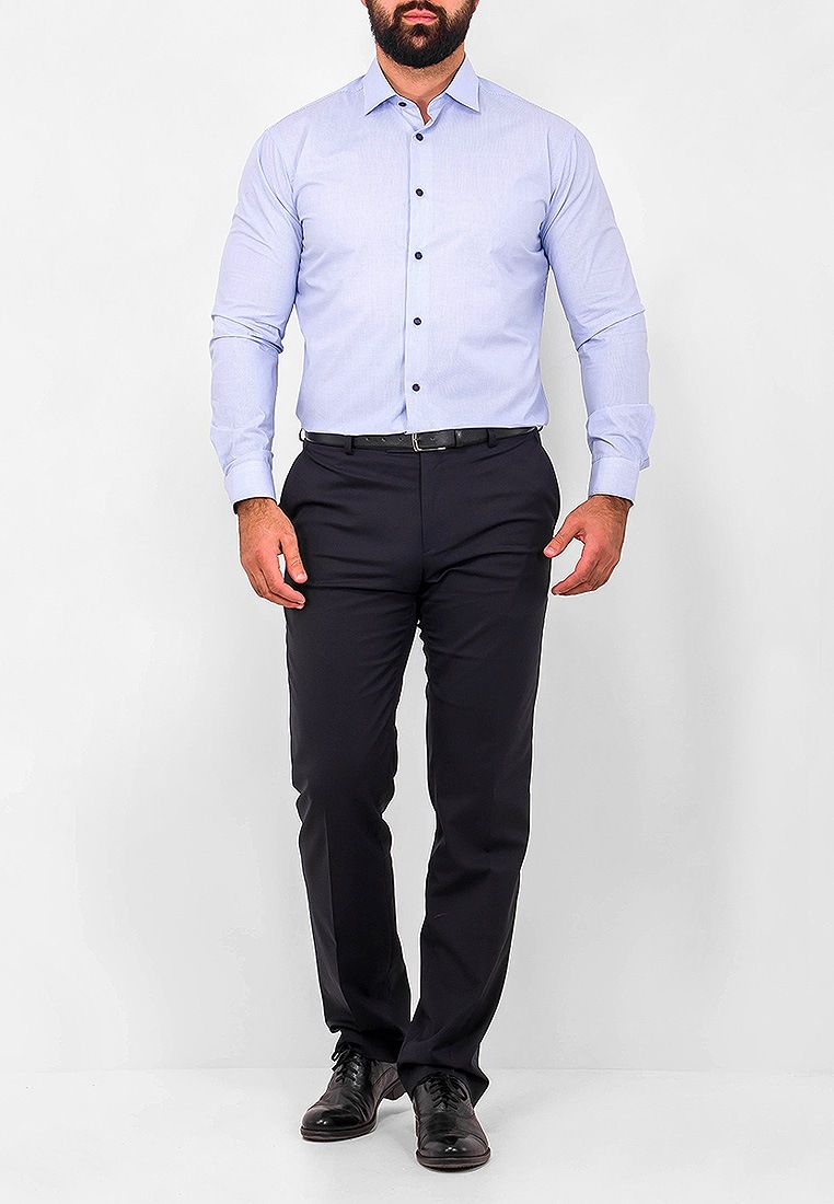 Цвет: Голубой Рисунок: Клетка..показать> Состав: 100% хлопок Модель: Зауженная Ворот: Французский маленький Караман: отсутствует Манжет: классический закругленный на пуговицах 6 см Силуэт: Полуприталенный силуэт / Regular fit Отделка: Сорочки- внутренняя стойка воротника и внутренний манжет из ткани компаньона>