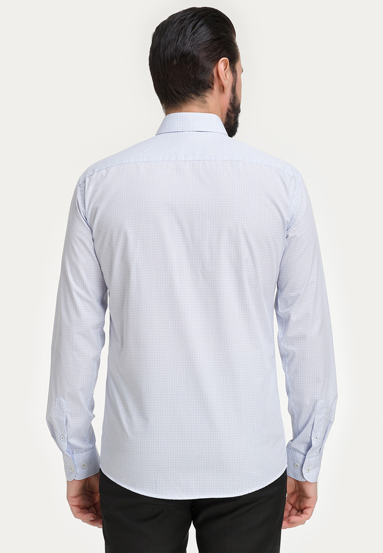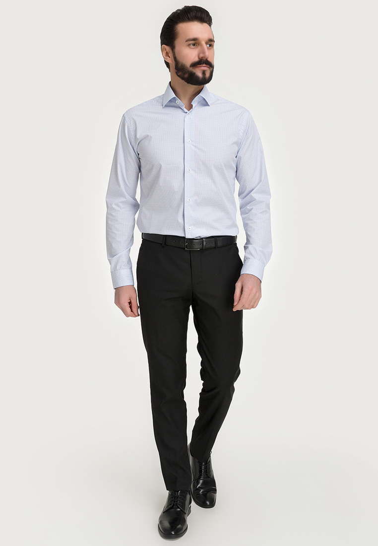 Цвет: Голубой Рисунок: Клетка..показать> Состав: 90% хлопок 10% полиэстер Модель: Зауженная Ворот: Французский маленький Караман: отсутствует Манжет: классический закругленный на пуговицах 6 см Силуэт: Полуприталенный силуэт / Regular fit Отделка: Сорочки- внутренняя стойка воротника и внутренний манжет из ткани компаньона>