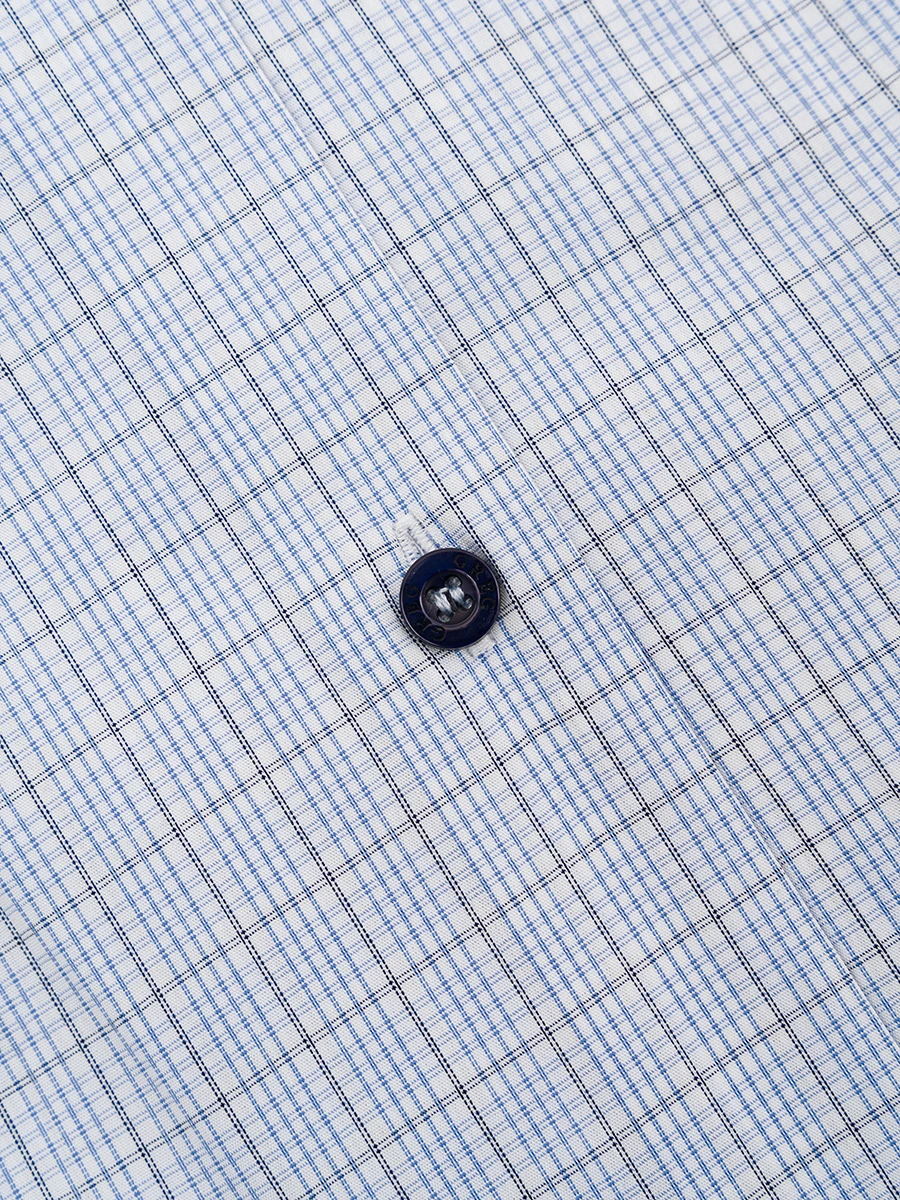Цвет: Голубой Рисунок: Клетка..показать> Состав: 80% лиоцелл, 17% нейлон, 3% спандекс Модель: Прилегающая Ворот: Немецкий Караман: два нагрудных накладных кармана по косой на пуговицах Манжет: классический закругленный на пуговицах 6 см Силуэт: Прилегающий силуэт / Super Slim fit Отделка: Сорочки- кант по нижнему краю внутренней стойки воротника из ткани компаньона>