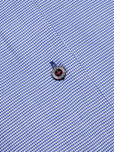 Цвет: Серый Рисунок: В мелкие эле..показатьменты Состав: 100% хлопок Easy Care Модель: Зауженная Ворот: Немецкий Караман: отсутствует Манжет: классический закругленный на пуговицах 6 см Силуэт: Полуприталенный силуэт / Regular fit Отделка: Сорочки- кант по нижнему краю внутренней стойки воротника из ткани компаньонаменты