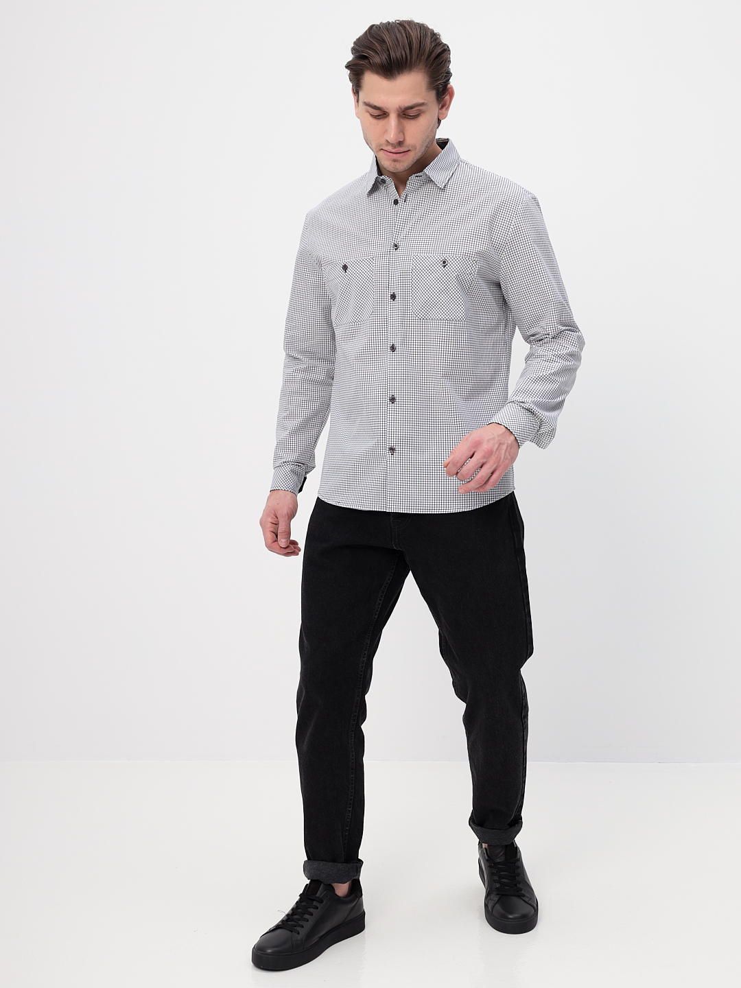 Цвет: Белый Рисунок: Клетка ..показатьСостав: 100% хлопок Модель: Прилегающая Ворот: Немецкий мягкий Караман: два нагрудных накладных кармана по косой на пуговицах Манжет: классический со скосом на пуговицах по косой Силуэт: Прилегающий силуэт / Super Slim fit Отделка: Сорочки- внутренняя стойка воротника и внутренний манжет из ткани компаньонаСостав: 100% хлопок Модель: Прилегающая Ворот: Немецкий мягкий Караман: два нагрудных накладных кармана по косой на пуговицах Манжет: классический со скосом на пуговицах по косой Силуэт: Прилегающий силуэт / Super Slim fit Отделка: Сорочки- внутренняя стойка воротника и внутренний манжет из ткани компаньона