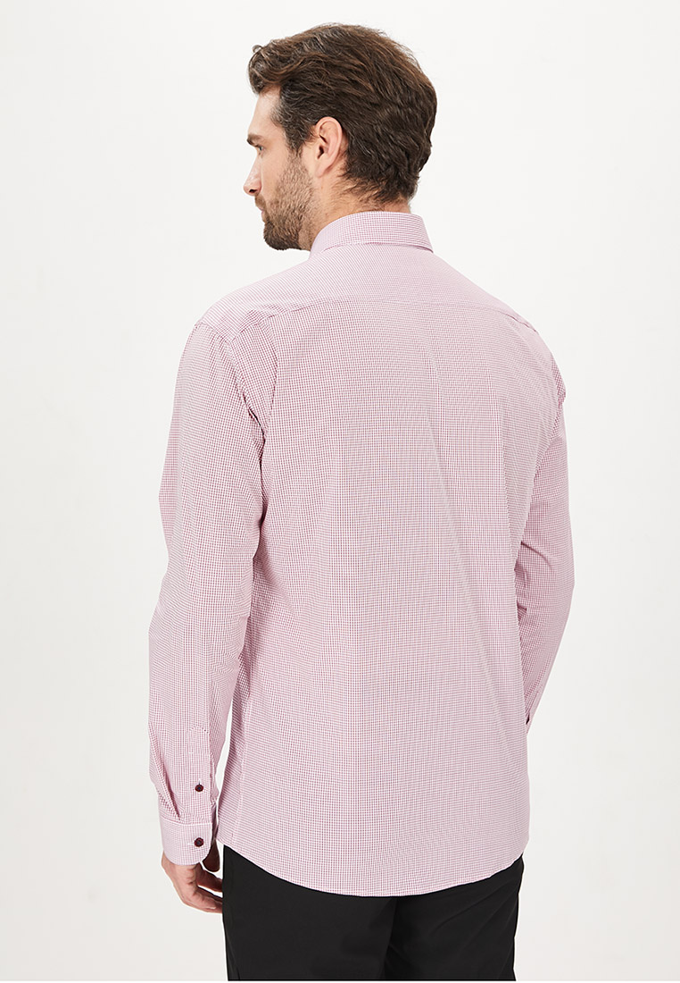 Цвет: Красный Рисунок: Клетка..показать> Состав: 97% хлопок 3% лайкра Модель: Зауженная Ворот: Французский маленький Караман: отсутствует Манжет: классический закругленный на пуговицах 6 см Силуэт: Полуприталенный силуэт / Regular fit Отделка: Сорочки- внутренняя стойка воротника и внутренний манжет из ткани компаньона>
