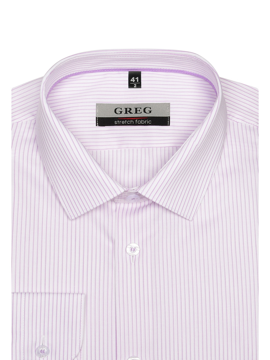 Цвет: Сиреневый Рисунок: Полоска<..показать/li> Состав: 97% хлопок 3% лайкра Модель: Прилегающая Ворот: Немецкий Караман: отсутствует Манжет: классический закругленный на пуговицах 6 см Силуэт: Полуприталенный силуэт / Regular fit Отделка: Сорочки- кант по нижнему краю внутренней стойки воротника из ткани компаньона/li>