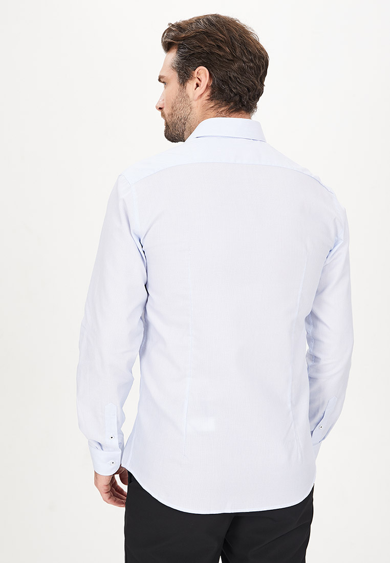 Цвет: Голубой Рисунок: В мелкие э..показатьлементы Состав: 100% хлопок Easy Care Модель: Зауженная с вытачками Ворот: Французский маленький Караман: отсутствует Манжет: классический закругленный на пуговицах 6 см Силуэт: Приталенный силуэт / Slim fit Отделка: Сорочки- кант по нижнему краю внутренней стойки воротника из ткани компаньоналементы