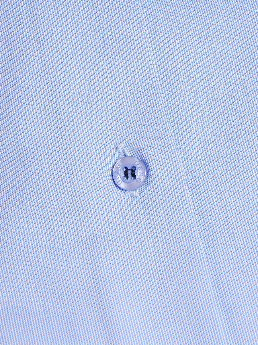 Цвет: Голубой Рисунок: Однотон с ..показатьфактурой Состав: 100% хлопок Non Iron Модель: Зауженная Ворот: Немецкий Караман: отсутствует Манжет: классический закругленный на пуговицах 6 см Силуэт: Полуприталенный силуэт / Regular fit Отделка: Сорочки- кант по нижнему краю внутренней стойки воротника из ткани компаньонафактурой