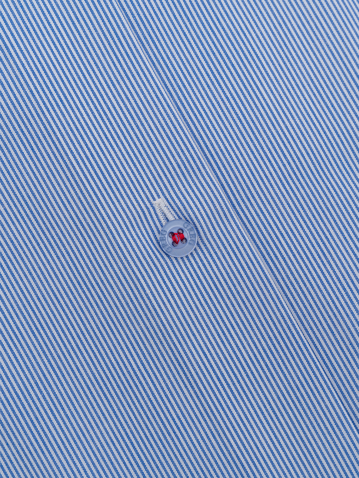 Цвет: Голубой Рисунок: Полоска..показатьi> Состав: 100% хлопок Non Iron Модель: Зауженная Ворот: Французский маленький Караман: отсутствует Манжет: классический закругленный на пуговицах 6 см Силуэт: Полуприталенный силуэт / Regular fiti>