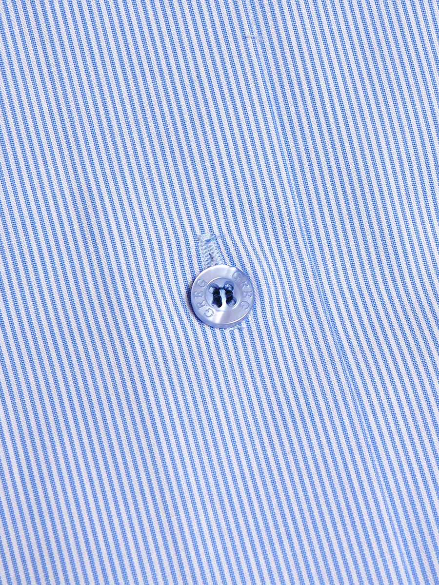 Цвет: Голубой Рисунок: Полоска..показатьi> Состав: 100% хлопок Non Iron Модель: Зауженная Ворот: Немецкий Караман: отсутствует Манжет: классический закругленный на пуговицах 6 см Силуэт: Полуприталенный силуэт / Regular fit Отделка: Сорочки- внутренняя стойка воротника из ткани компаньонаi>