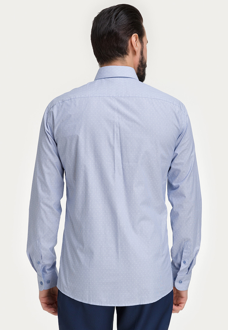 Цвет: Голубой Рисунок: В мелкие э..показатьлементы Состав: 100% хлопок Easy Care Модель: Зауженная Ворот: Французский маленький Караман: отсутствует Манжет: классический закругленный на пуговицах 6 см Силуэт: Полуприталенный силуэт / Regular fit Отделка: Сорочки- внутренняя стойка воротника и внутренний манжет из ткани компаньоналементы
