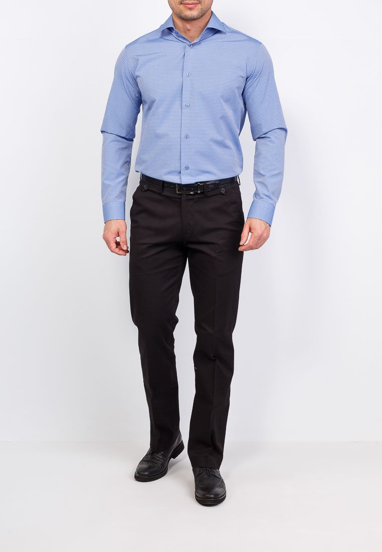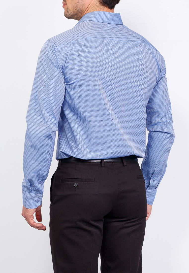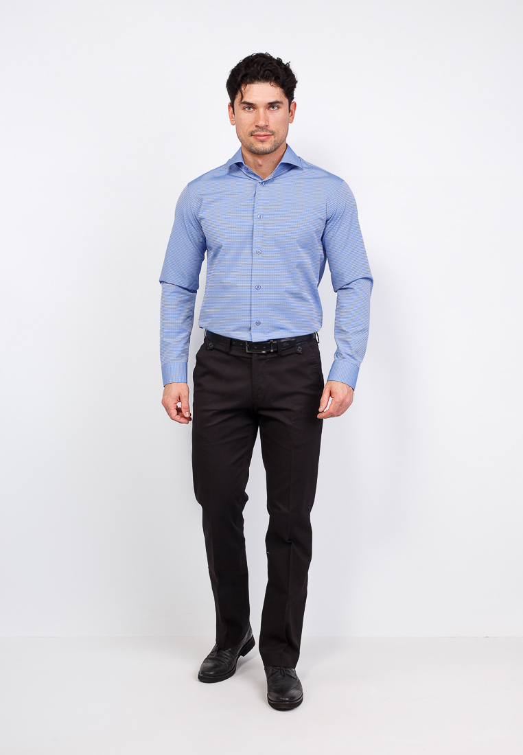 Цвет: Голубой Рисунок: В мелкие э..показатьлементы Состав: 90% хлопок 10% полиэстер Модель: Зауженная Ворот: Французский маленький Караман: отсутствует Манжет: универсальный закругленный на пуговицах и под запонки Силуэт: Полуприталенный силуэт / Regular fitлементы