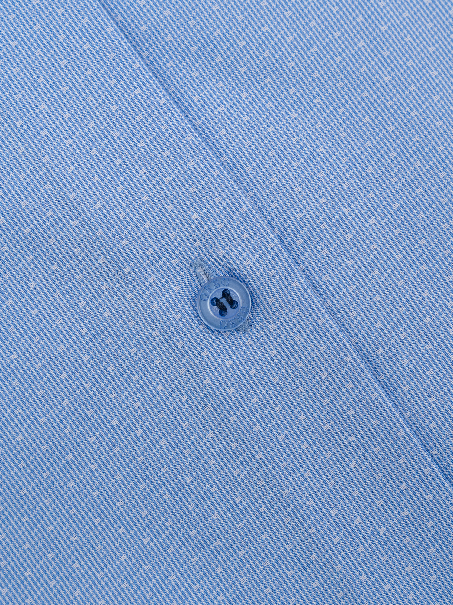 Цвет: Голубой Рисунок: В мелкие э..показатьлементы Состав: 97% хлопок 3% лайкра Модель: Прилегающая с вытачками Ворот: Немецкий Караман: отсутствует Манжет: классический закругленный на пуговицах 6 см Силуэт: Прилегающий силуэт / Super Slim fit Отделка: Сорочки- внутренняя стойка воротника и внутренний манжет из ткани компаньоналементы