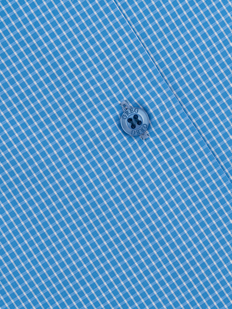 Цвет: Голубой Рисунок: Клетка..показать> Состав: 90% хлопок 10% полиэстер Модель: Зауженная Ворот: Французский маленький Караман: отсутствует Манжет: классический закругленный на пуговицах 6 см Силуэт: Полуприталенный силуэт / Regular fit Отделка: Сорочки- внутренняя стойка воротника и внутренний манжет из ткани компаньона>