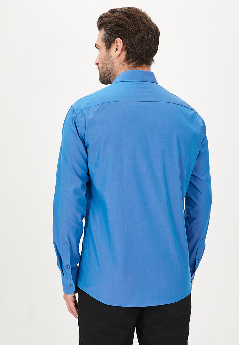 Цвет: Голубой Рисунок: Без рисунк..показатьа Состав: 100% хлопок Non Iron Модель: Зауженная Ворот: Французский маленький Караман: отсутствует Манжет: универсальный закругленный на пуговицах и под запонки Силуэт: Полуприталенный силуэт / Regular fitа
