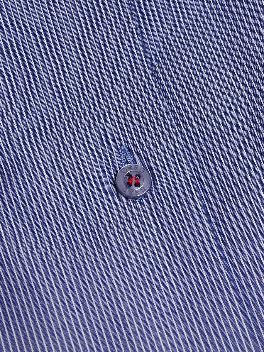Цвет: Голубой Рисунок: Полоска..показатьi> Состав: 100% хлопок Non Iron Модель: Зауженная Ворот: Немецкий Караман: отсутствует Манжет: классический закругленный на пуговицах 6 см Силуэт: Полуприталенный силуэт / Regular fit Отделка: Сорочки- тесьма по нижнему краю внутренней стойки воротникаi>