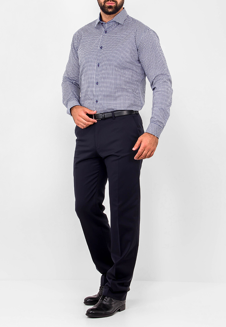 Цвет: Синий Рисунок: В мелкие эле..показатьменты Состав: 100% хлопок Модель: Зауженная Ворот: Французский маленький Караман: отсутствует Манжет: классический закругленный на пуговицах 6 см Силуэт: Полуприталенный силуэт / Regular fit Отделка: Сорочки- внутренняя стойка воротника и внутренний манжет из ткани компаньонаменты