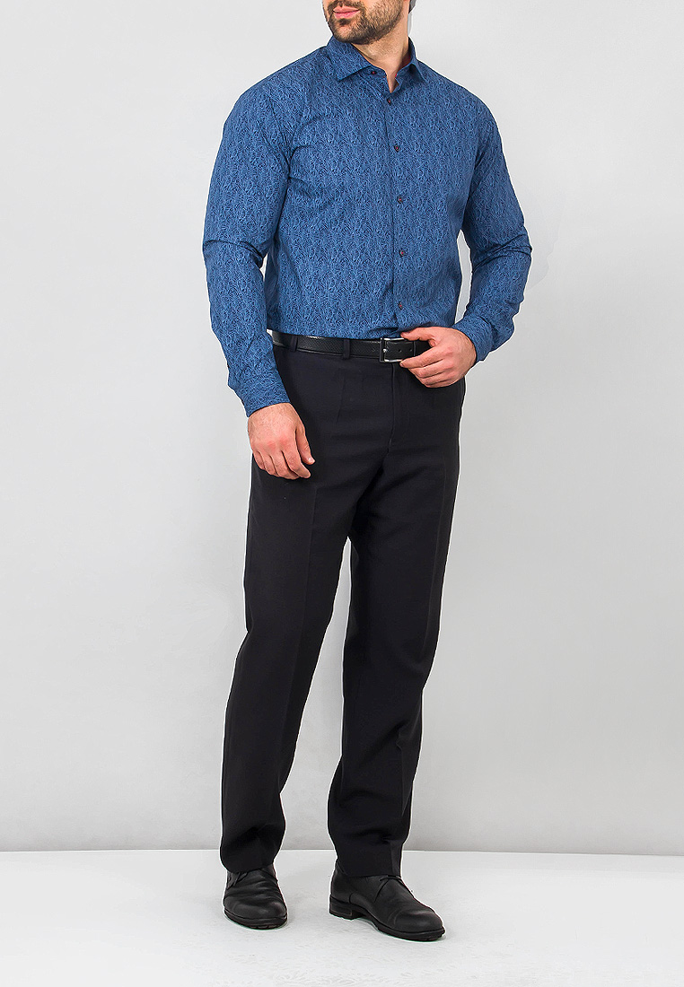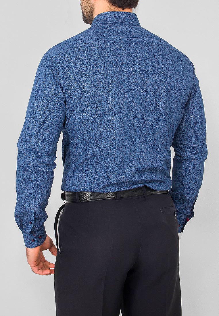 Цвет: Синий Рисунок: В крупные эл..показатьементы Состав: 100% хлопок Модель: Зауженная Ворот: Французский маленький Караман: отсутствует Манжет: классический закругленный на пуговицах 6 см Силуэт: Полуприталенный силуэт / Regular fit Отделка: Сорочки- внутренняя стойка воротника и внутренний манжет из ткани компаньонаементы
