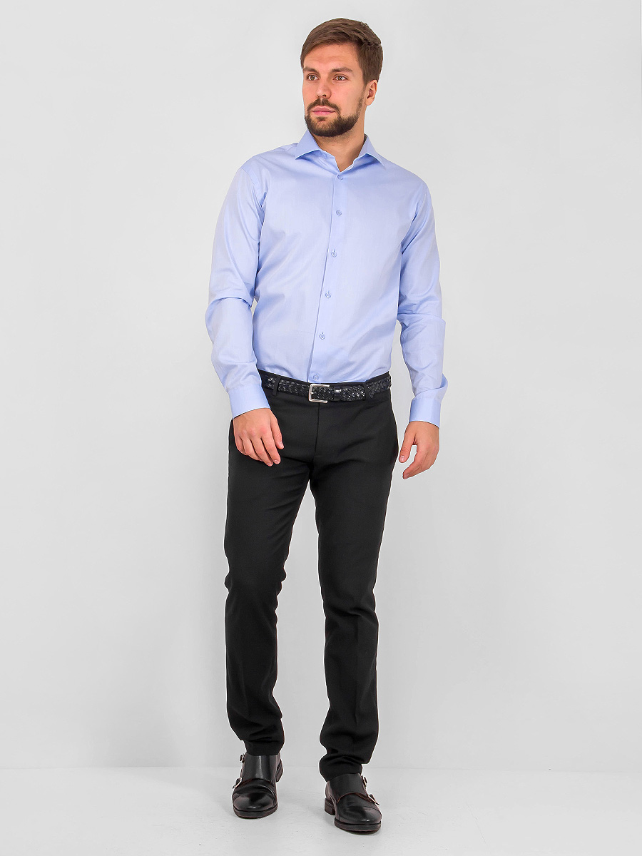 Цвет: Голубой Рисунок: В мелкие э..показатьлементы Состав: 100% хлопок Модель: Зауженная Ворот: Французский маленький Караман: отсутствует Манжет: классический закругленный на пуговицах 6 см Силуэт: Полуприталенный силуэт / Regular fitлементы
