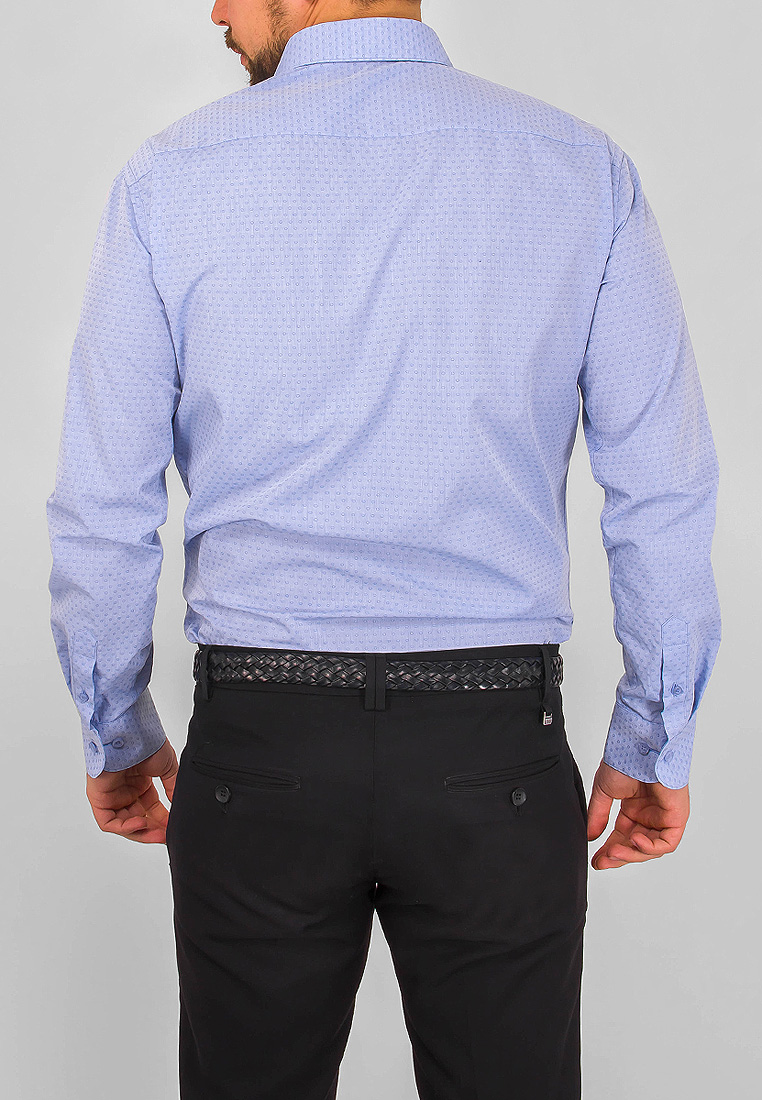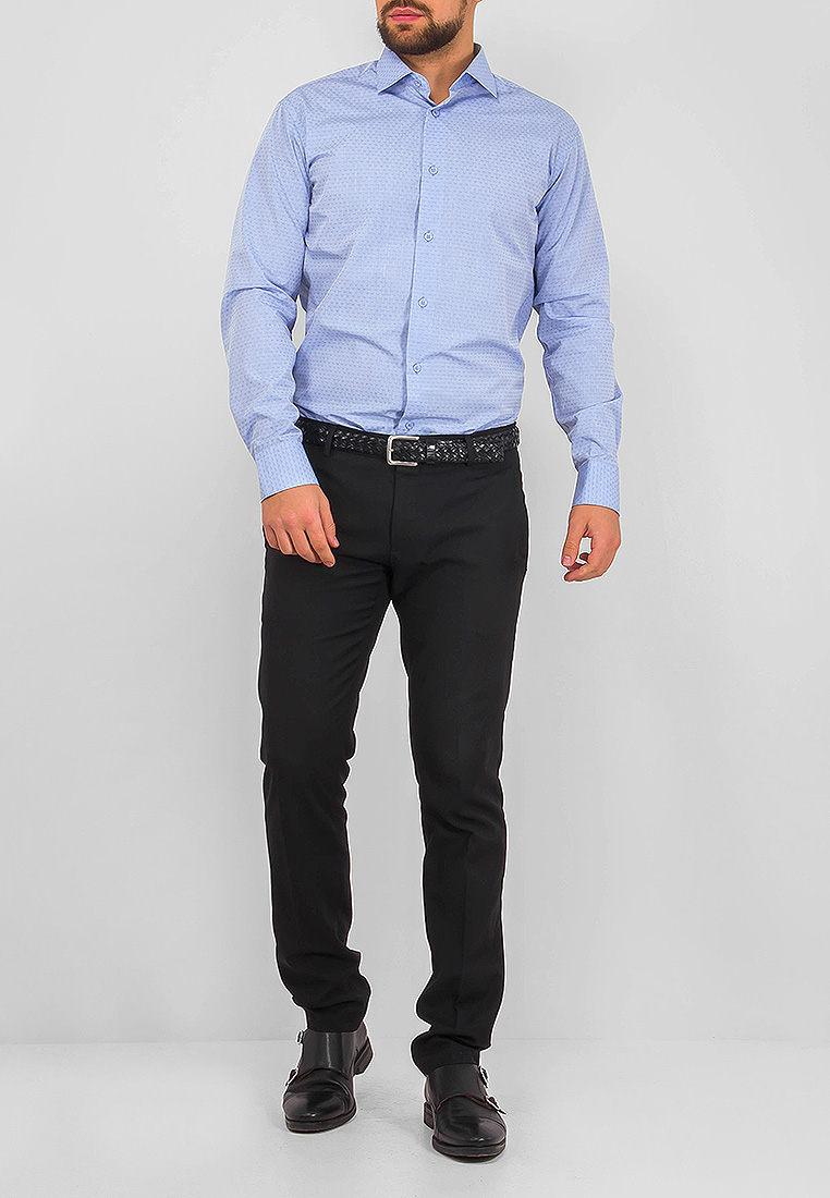 Цвет: Голубой Рисунок: В мелкие э..показатьлементы Состав: 90% хлопок 10% полиэстер Модель: Зауженная Ворот: Французский маленький Караман: отсутствует Манжет: универсальный закругленный на пуговицах и под запонки Силуэт: Полуприталенный силуэт / Regular fitлементы