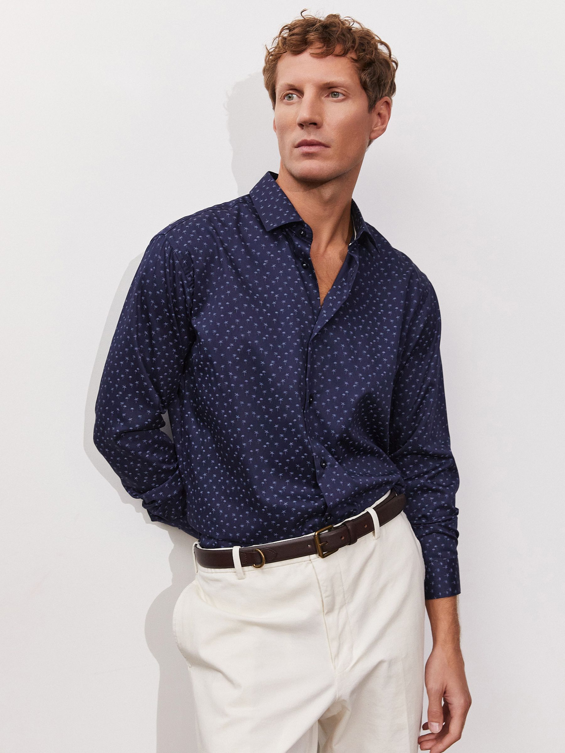 Цвет: Синий Рисунок: В мелкие эле..показатьменты Состав: 100% хлопок Easy Care Модель: Зауженная Ворот: Немецкий Караман: отсутствует Манжет: классический закругленный на пуговицах 6 см Силуэт: Полуприталенный силуэт / Regular fit Отделка: Сорочки- тесьма по нижнему краю внутренней стойки воротникаменты