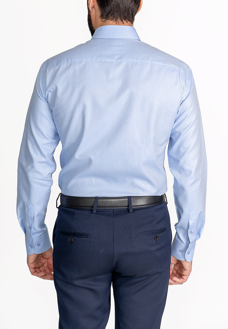 Цвет: Голубой Рисунок: Клетка..показать> Состав: 100% хлопок Easy Care Модель: Зауженная Ворот: Французский маленький Караман: отсутствует Манжет: универсальный закругленный на пуговицах и под запонки Силуэт: Полуприталенный силуэт / Regular fit>