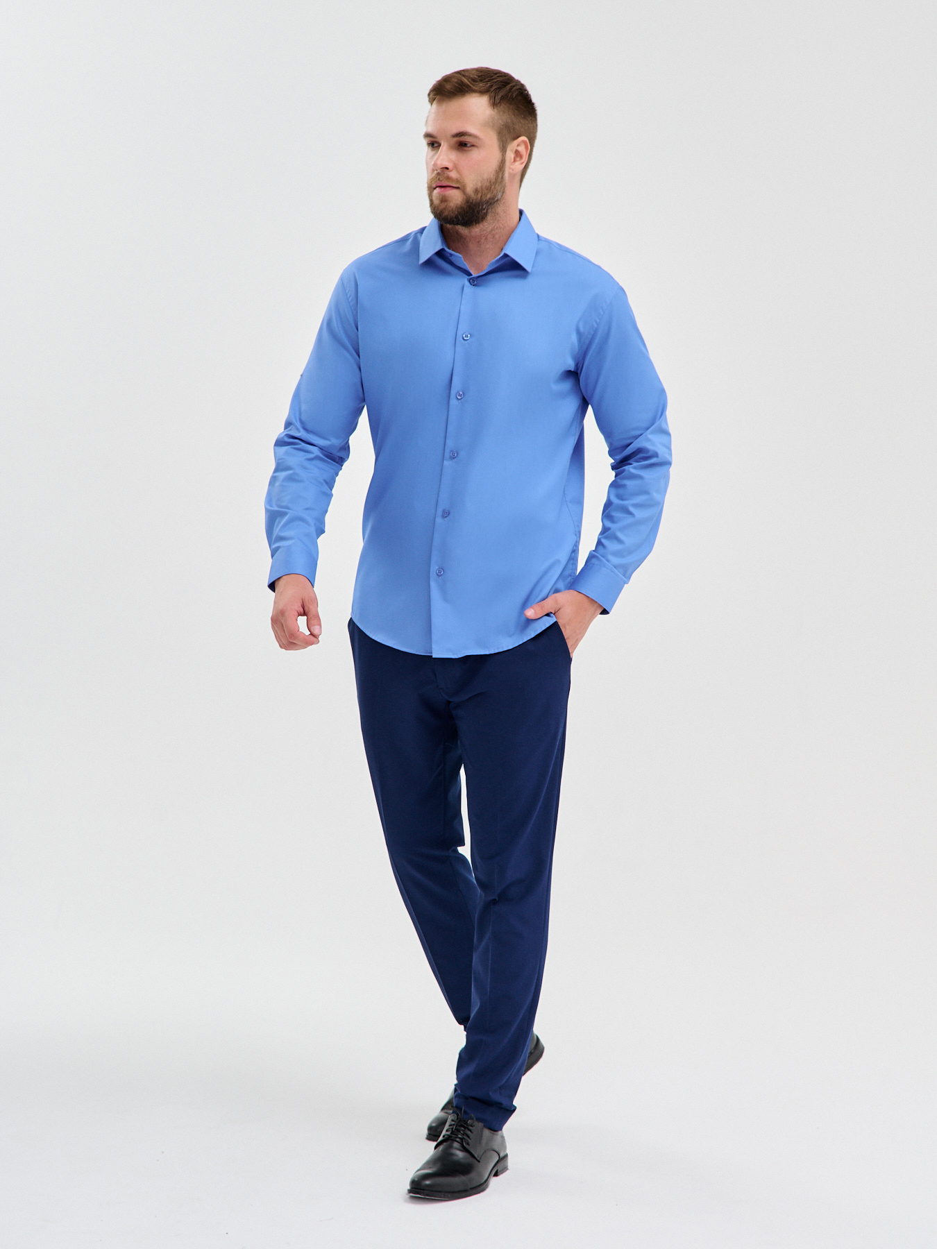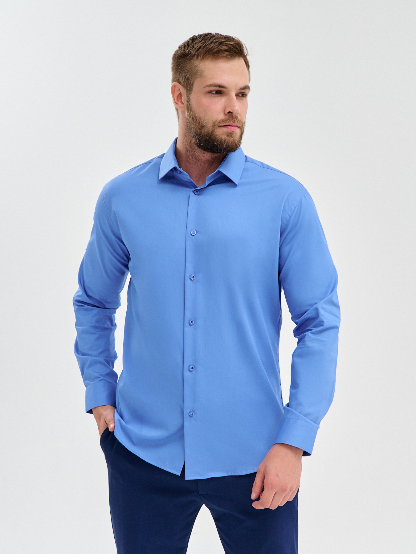 Цвет: Голубой Состав: 100% хлопок..показать Non Iron Модель: Зауженная Ворот: Немецкий Караман: отсутствует Манжет: классический закругленный на пуговицах 6 см Силуэт: Полуприталенный силуэт / Regular fit Non Iron