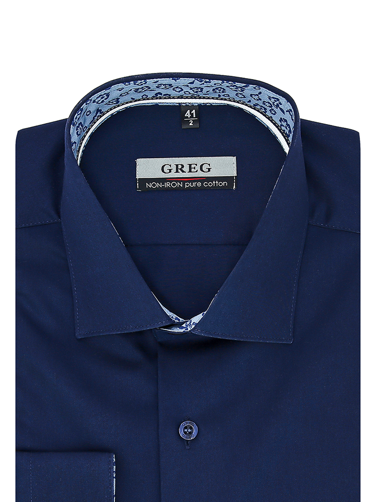 Цвет: Синий Рисунок: Без рисунка<..показать/li> Состав: 100% хлопок Non Iron Модель: Зауженная Ворот: Французский маленький Караман: отсутствует Манжет: классический закругленный на пуговицах 6 см Силуэт: Полуприталенный силуэт / Regular fit Отделка: Сорочки- внутренняя стойка воротника и внутренний манжет из ткани компаньона/li>