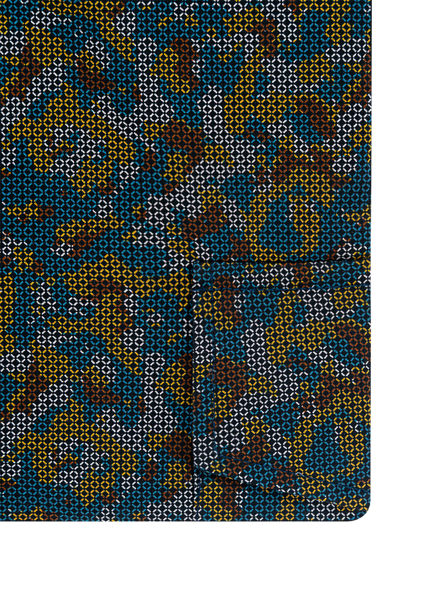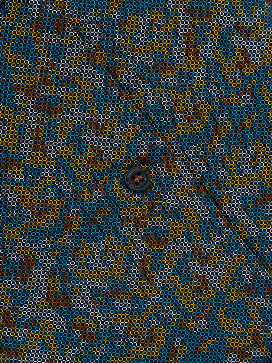 Цвет: Синий Рисунок: В крупные эл..показатьементы Состав: 100% хлопок Easy Care Модель: Зауженная Ворот: Французский маленький Караман: 2 накладных кармана с клапаном Манжет: классический закругленный на пуговицах 6 см Силуэт: Полуприталенный силуэт / Regular fit Отделка: Сорочки- внутренняя стойка воротника и внутренний манжет из ткани компаньонаементы
