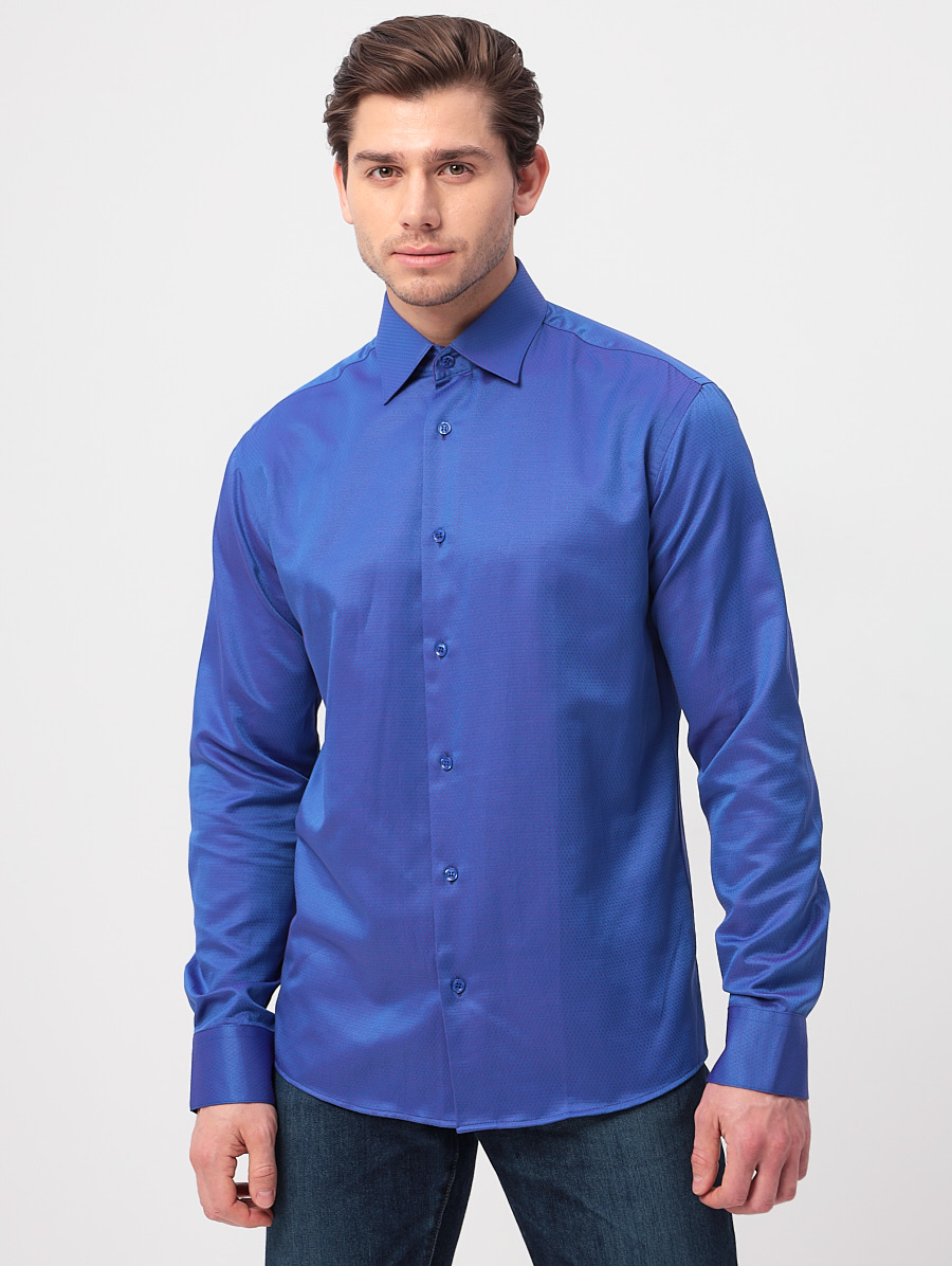 Цвет: Синий Рисунок: В мелкие эле..показатьменты Состав: 90% хлопок 10% полиэстер Модель: Зауженная Ворот: Французский Караман: отсутствует Манжет: универсальный закругленный на пуговицах и под запонки Силуэт: Полуприталенный силуэт / Regular fit Отделка: Сорочки-1 внутренняя стойка воротника и внутренний манжет из ткани наизнанку5eed3906-574f-11e3-8947-c80aa904729b