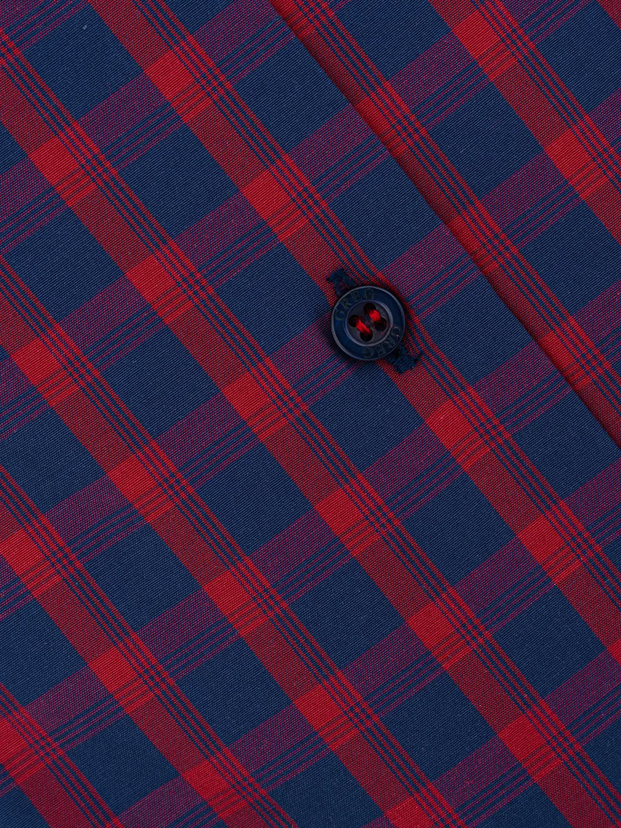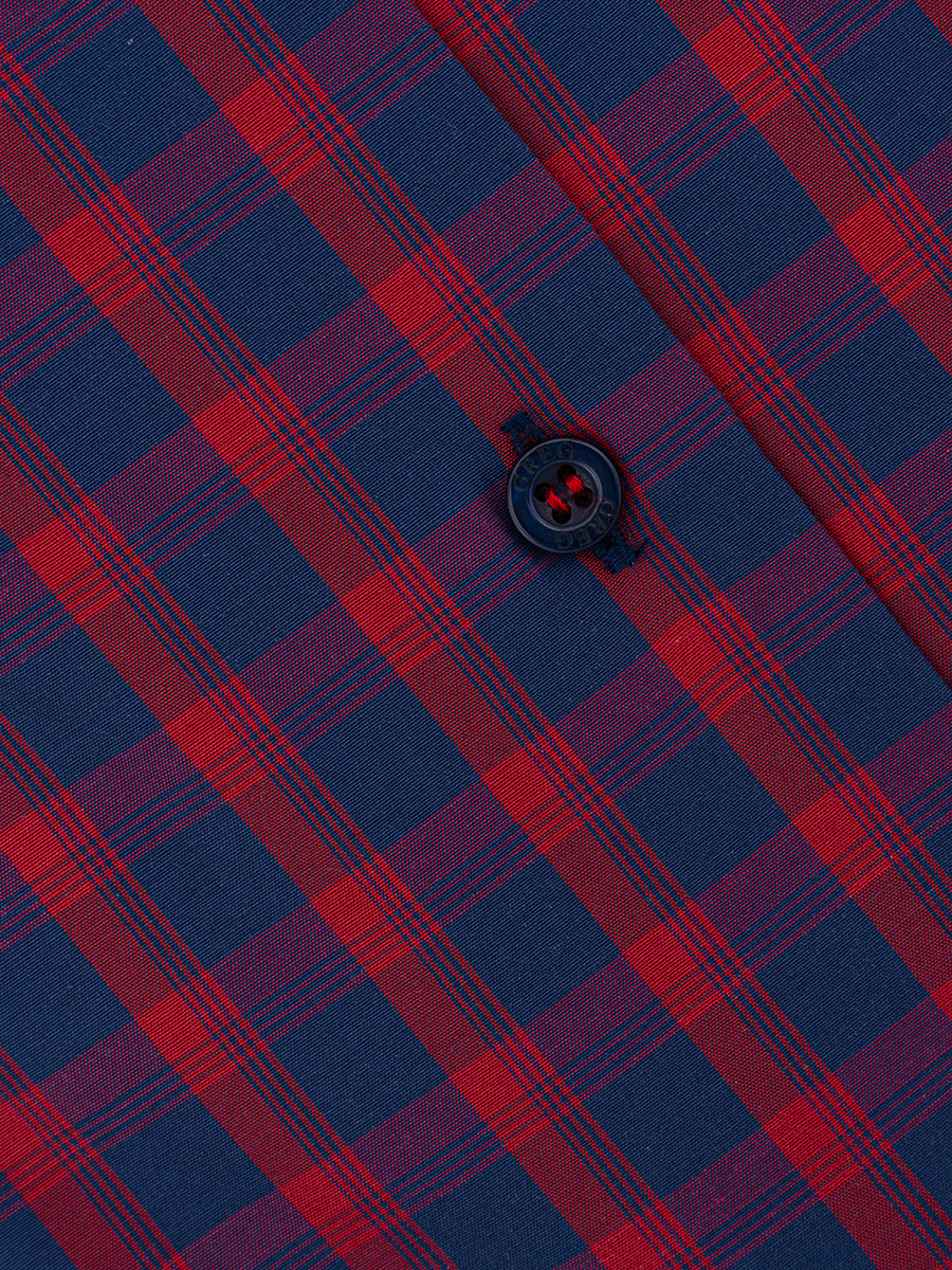 Цвет: Красный Рисунок: Клетка..показать> Состав: 90% хлопок 10% полиэстер Модель: Зауженная Ворот: Французский маленький Караман: отсутствует Манжет: классический закругленный на пуговицах 6 см Силуэт: Полуприталенный силуэт / Regular fit Отделка: Сорочки- внутренняя стойка воротника и внутренний манжет из ткани компаньона>