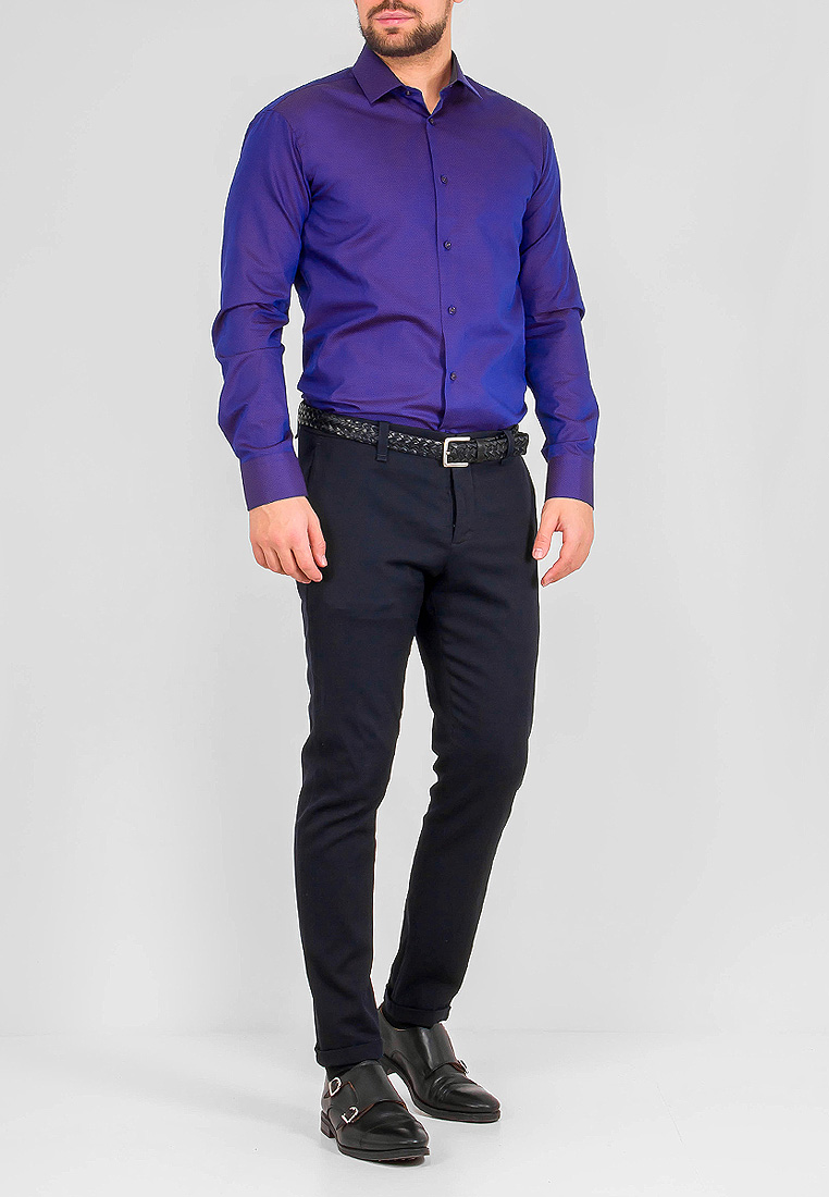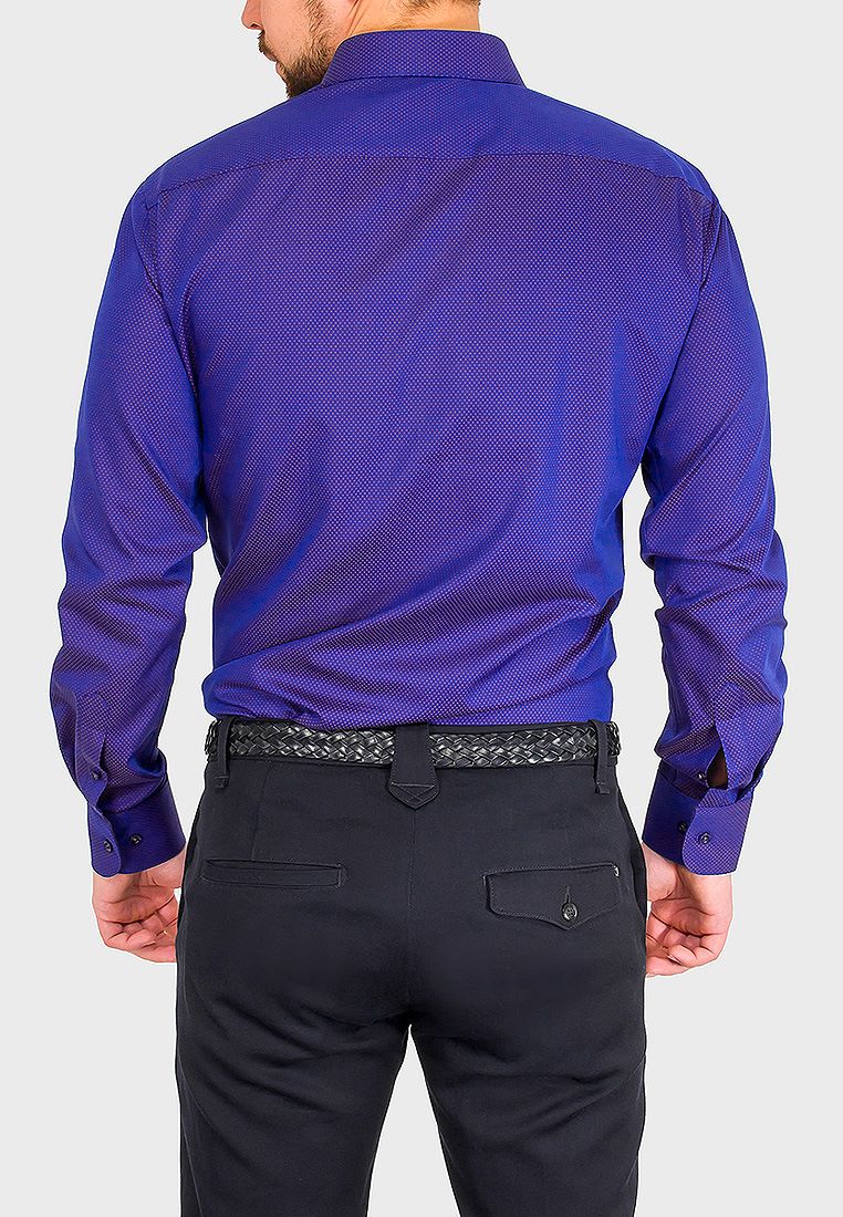Цвет: Синий Рисунок: В мелкие эле..показатьменты Состав: 100% хлопок Модель: Зауженная Ворот: Немецкий Караман: отсутствует Манжет: классический закругленный на пуговицах Силуэт: Полуприталенный силуэт / Regular fit Отделка: Сорочки- внутренняя стойка воротника и внутренний манжет из этой же ткани наизнанкументы